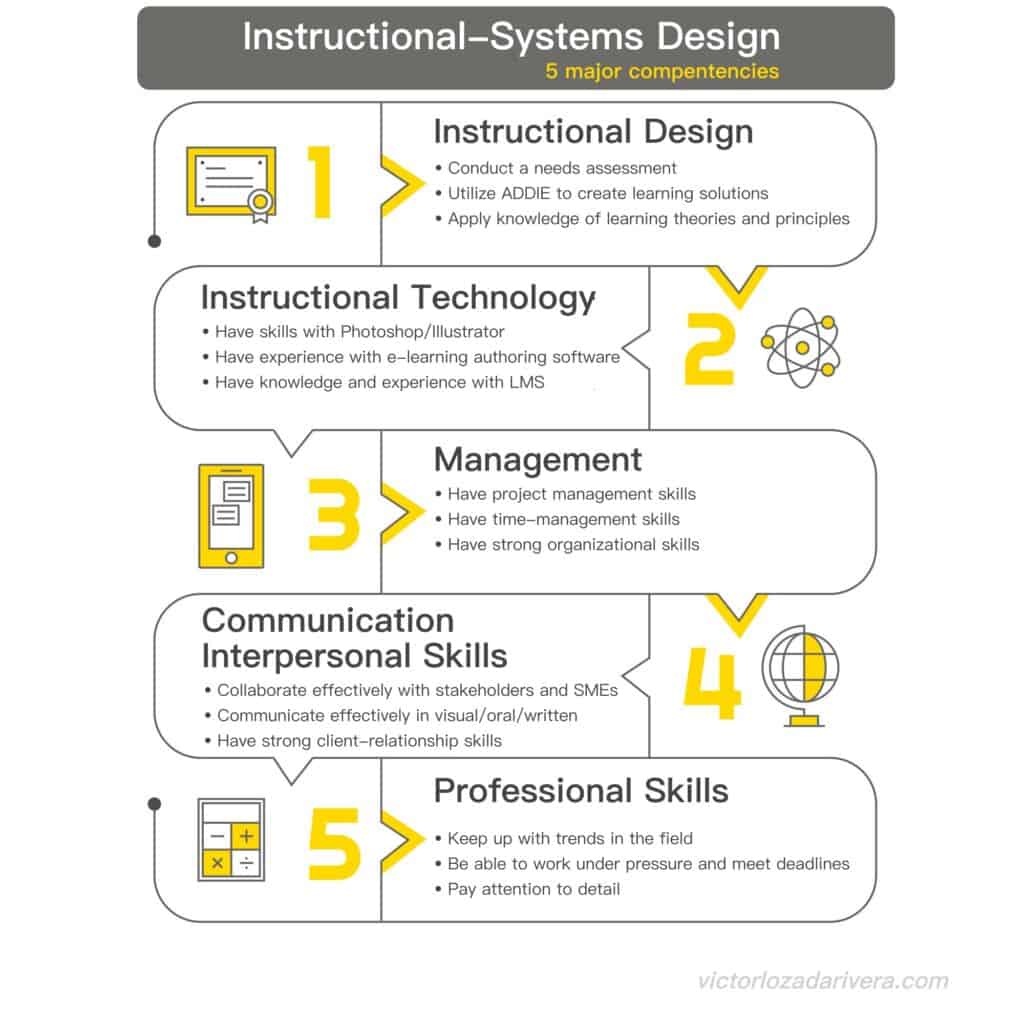 Employers expect Instructional Systems Designers to have competences in these five major categories: